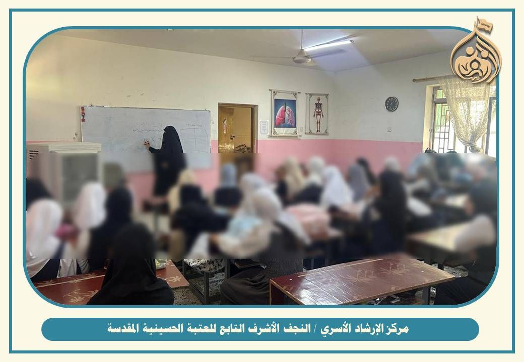 نظم مركز الإرشاد الأسري في النجف الاشرف التابع للعتبة الحسينية المقدسة وبالتعاون مع مدرسة الجواهر للتعليم المسرّع نشاطًا إرشاديًا للطالبات.